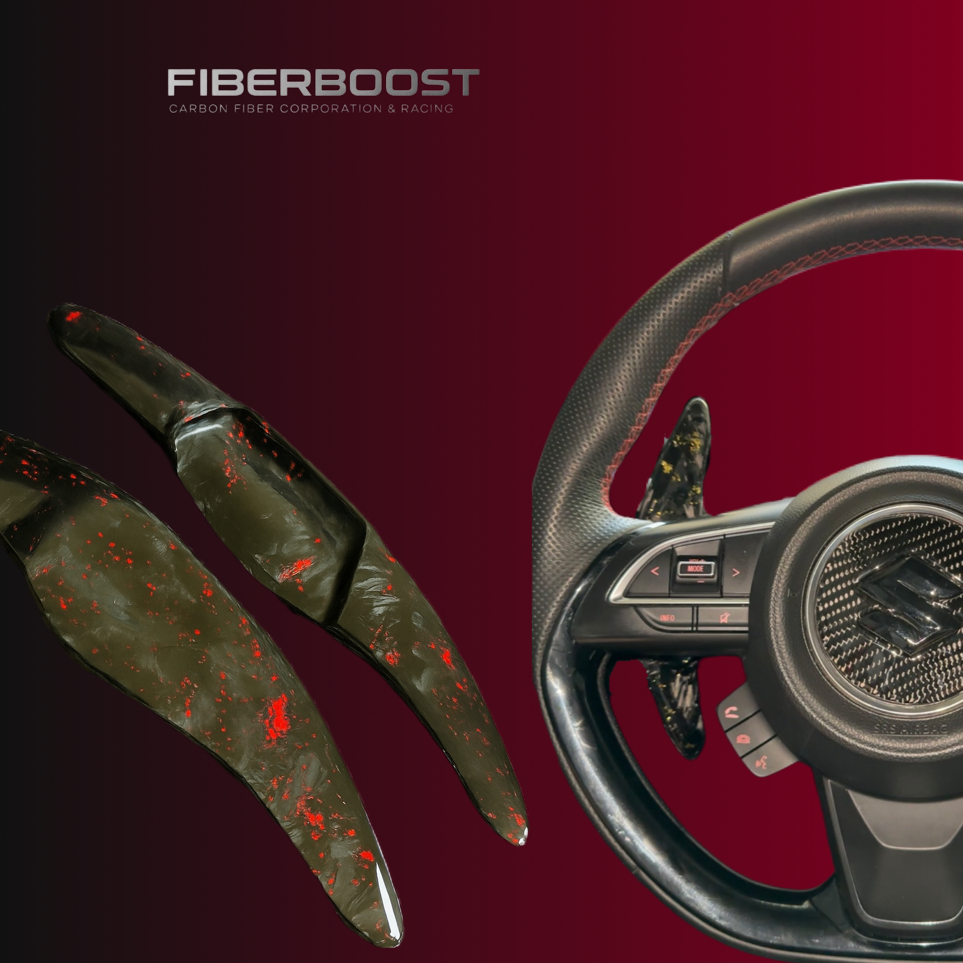 Lleva tu experiencia de manejo al siguiente nivel con esta Paleta personalizada para Suzuki, fabricadas en fibra de carbono forjada con detalles de colores exclusivos.