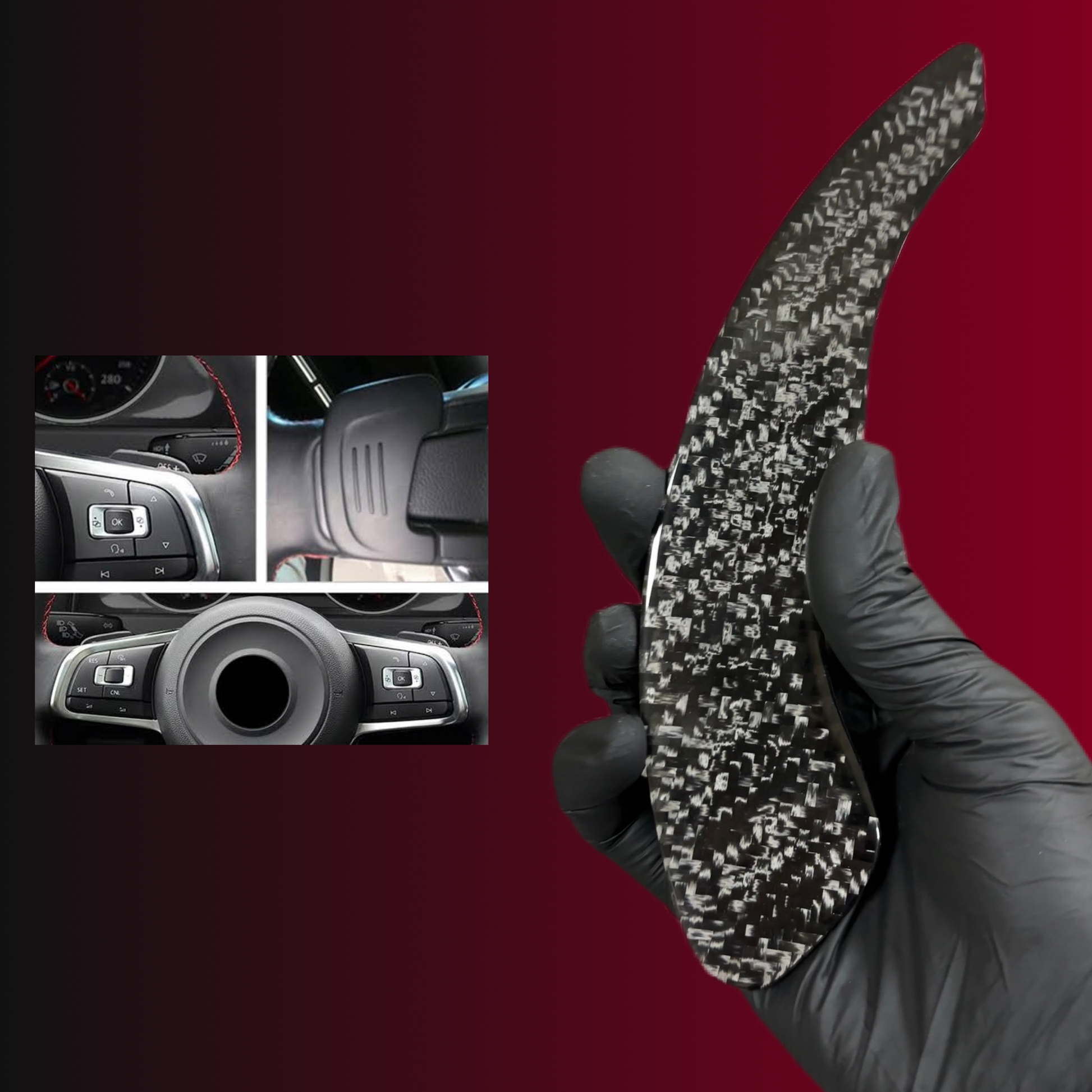 Potencia tu interior con estas exclusivas paletas de cambio diseñadas para vehículos del grupo VAG (Volkswagen, Audi, SEAT, Skoda). Fabricadas con una combinación de fibra de carbono forjada en la parte frontal y fibra de carbono tejida en la parte trasera, ofrecen una estética única y un agarre firme al conducir.